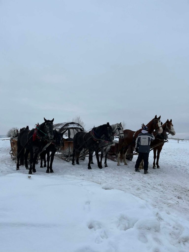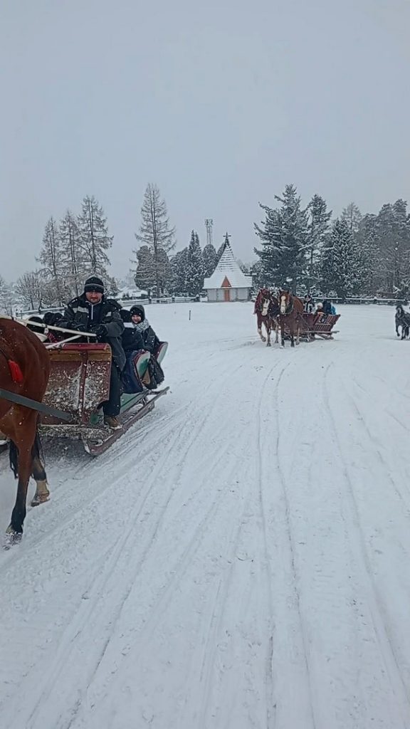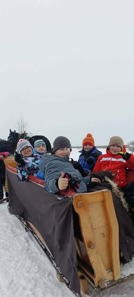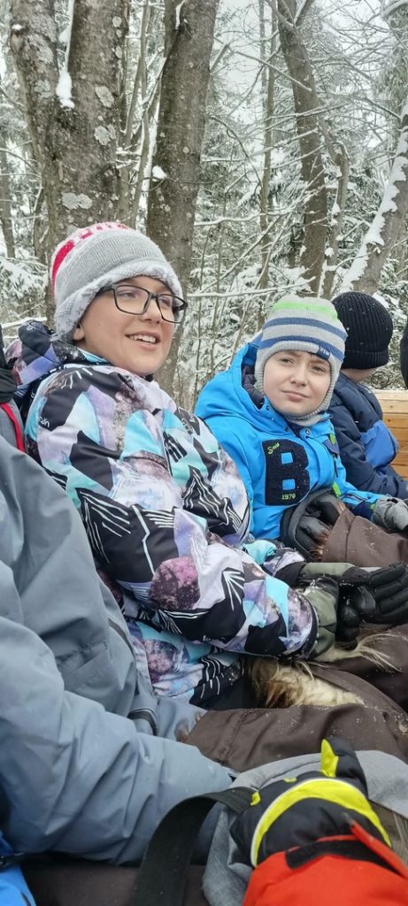 Przejażdżka saniami zaprzężonymi w konie dostarczyła wielu emocji i pozwoliła podziwiać piękne widoki. Wspólne zabawy na śniegu wywołały mnóstwo uśmiechów