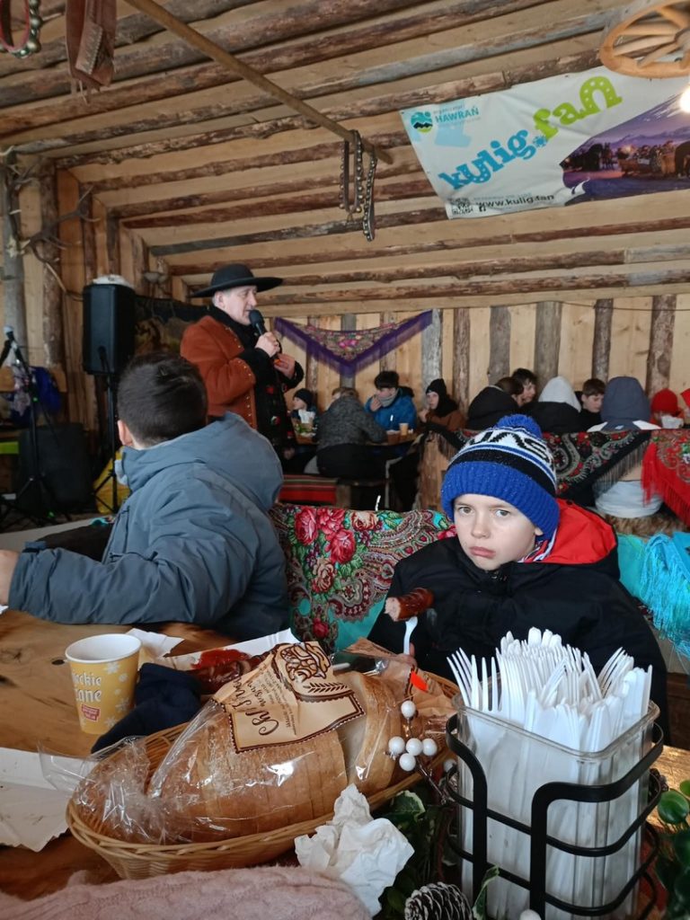 Dużą atrakcją było spotkanie z góralem, który opowiadał o podhalańskich zwyczajach i poprowadził wesołe konkursy. Wydarzenie przebiegło w serdecznej, walentynkowej atmosferze i na długo pozostanie w pamięci uczniów jako dzień pełen śmiechu, integracji i zimowych przygód.